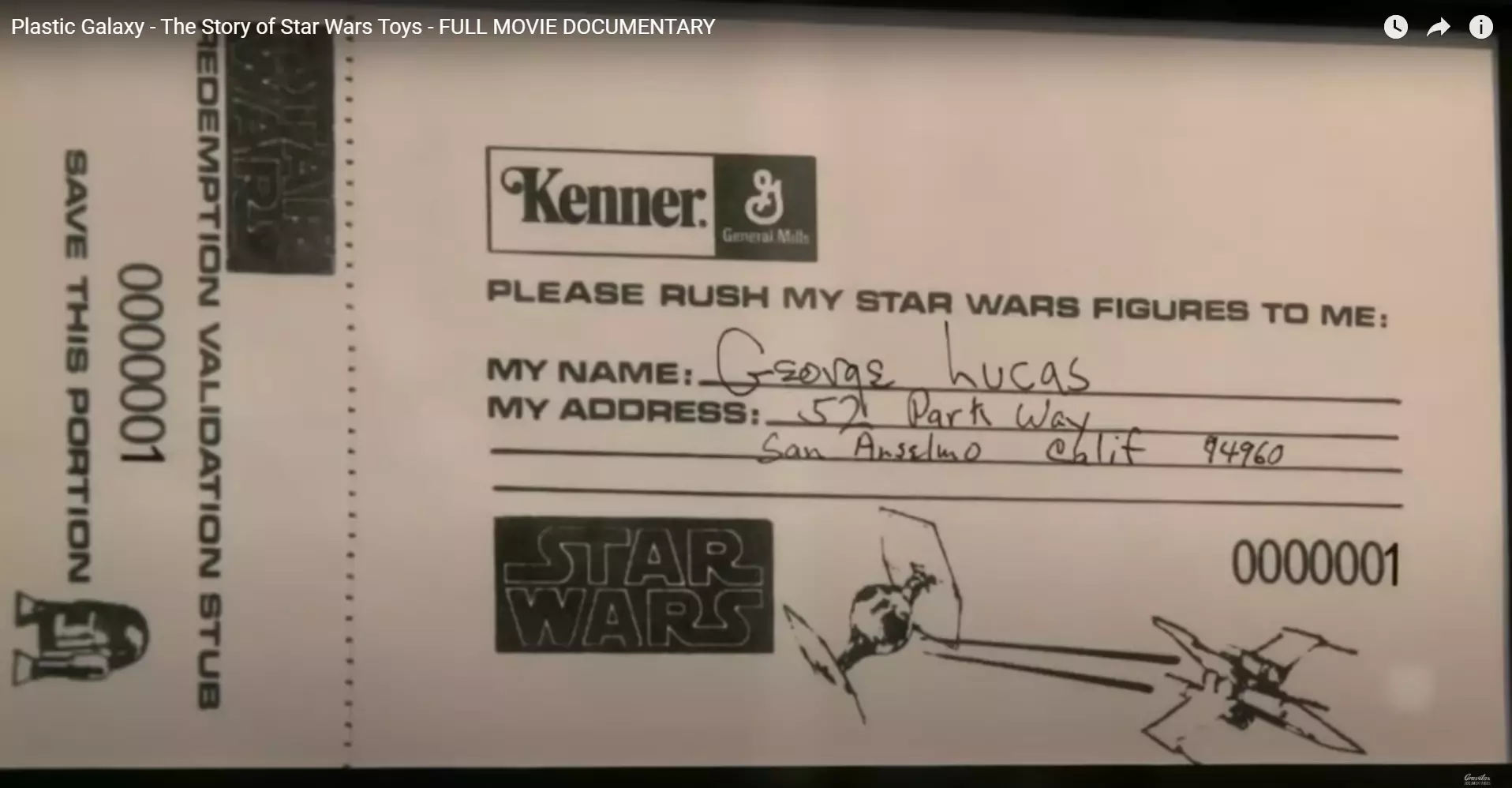 Para la promesa de los primeros juguetes de Star Wars, el Early Bird Certificate, cuando se lo presentaron a George Lucas y su equipo, estos quisieron ser parte de esto y conocer luego qué es lo que los niños recibirían. Dado esto, ellos y personal de Kenner firmaron los primeros cupones de solicitud de estos juguetes (Imágenes capturadas del documental Plastic Galaxy – The story of Star Wars Toys.