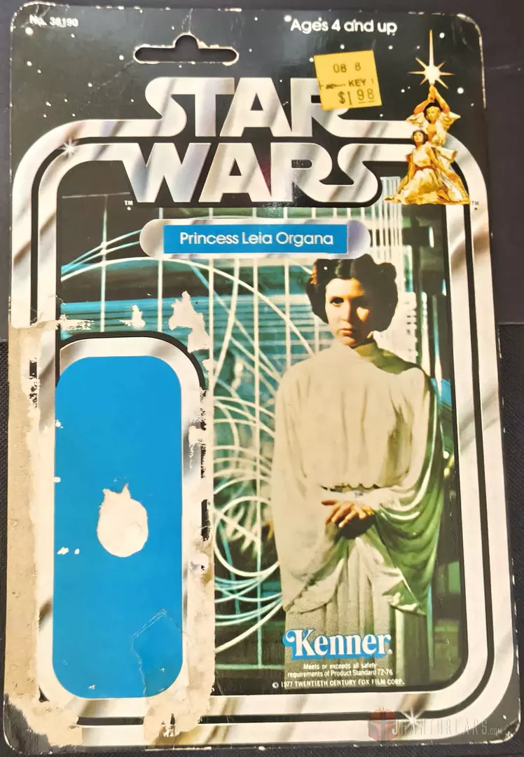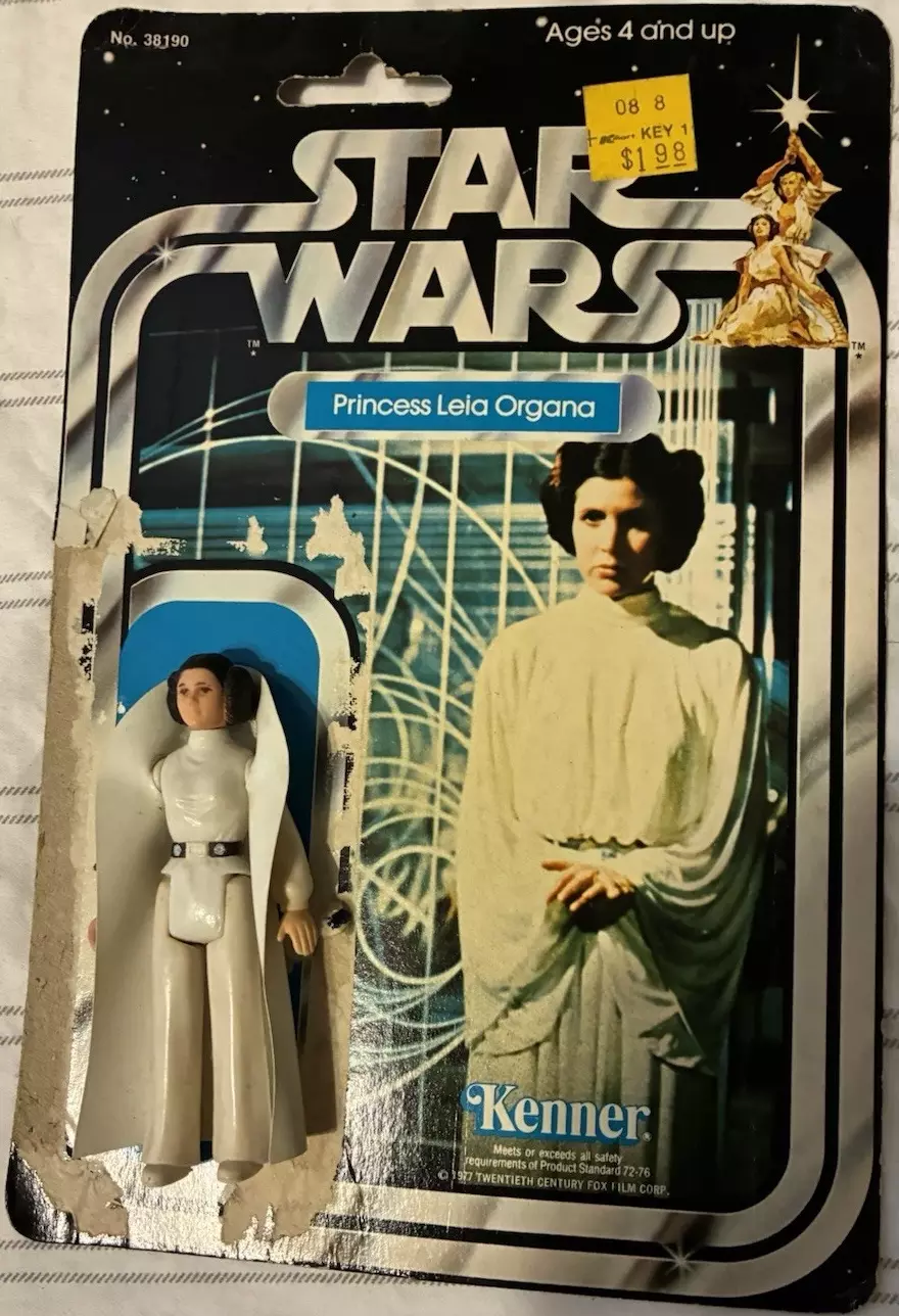 Princess Leia Organa representa a la princesa Leia como se le veía en la película original de Star Wars: A New Hope, con su icónico peinado de “rollo de canela” y su traje blanco de líder rebelde. Es una figura perteneciente a una de las cuatro de la línea de juguetes Star Wars “Early Bird Certificate” promocionada en 1977 y entregada en 1978. Este paquete también incluía un soporte de exhibición de diorama, algunas calcomanías y una tarjeta de membresía del club oficial de fans de Star Wars. Las figuras que lo acompañaban eran Chewbacca, Luke Skywalker y R2-D2.