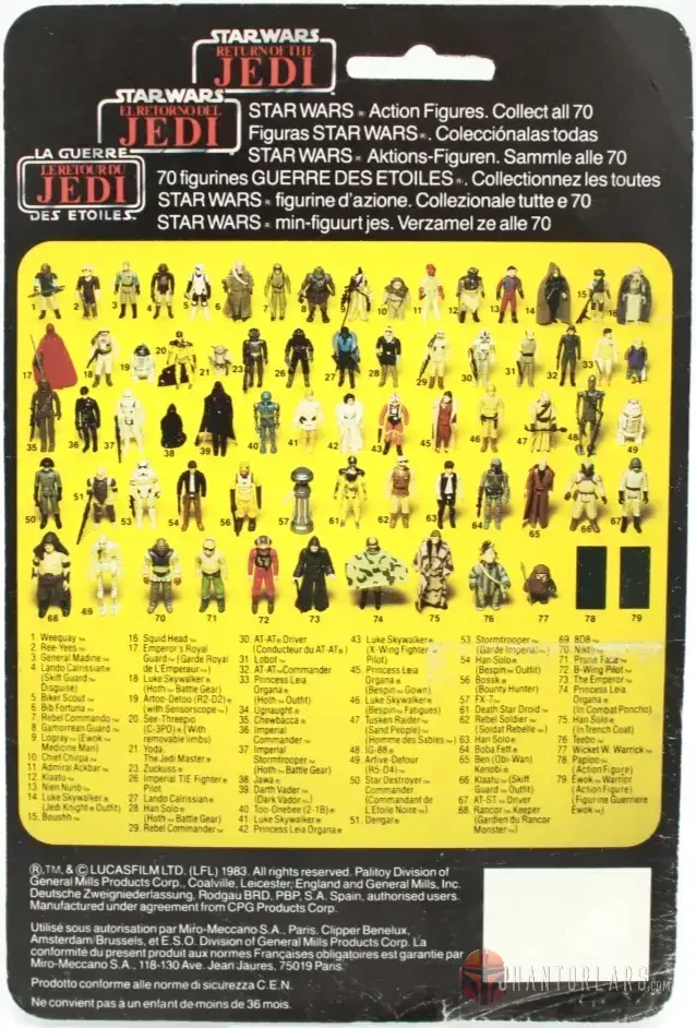 En esta sección se revisan algunas variantes (o variaciones, como también se les llama) que he identificado en esta figura a lo largo de la colección vintage de Star Wars. ¿Y qué se puede definir como una variante? Básicamente, es cuando una figura tiene algo distinto: desde la identificación de origen (COO), pasando por el color de una de sus partes, el molde, el tipo de tela, o algún detalle en la pintura.